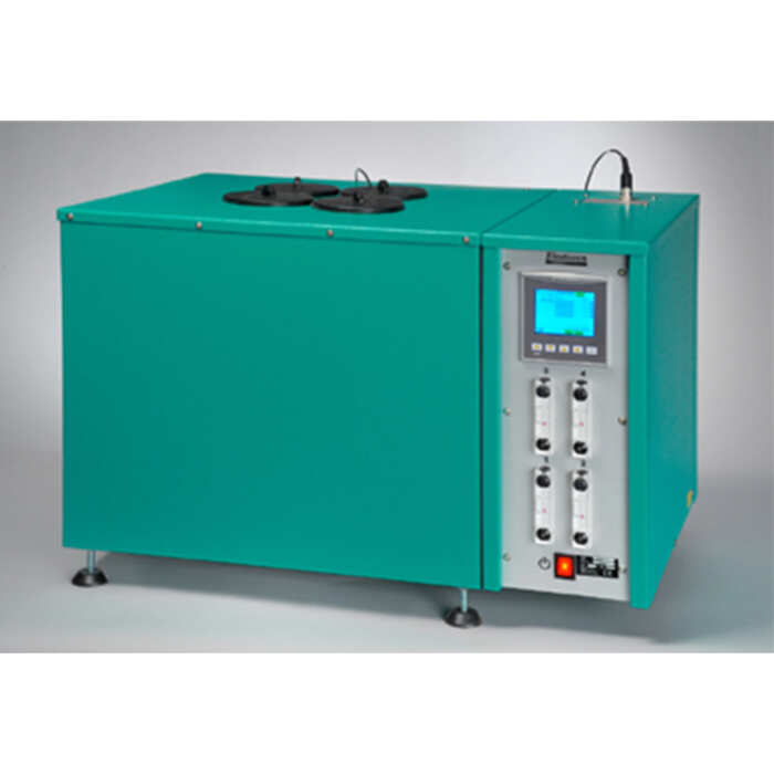Cel-oven voor het testen van levensduur en veroudering van rubber en kunststoffen in strikt gecontroleerde condities.